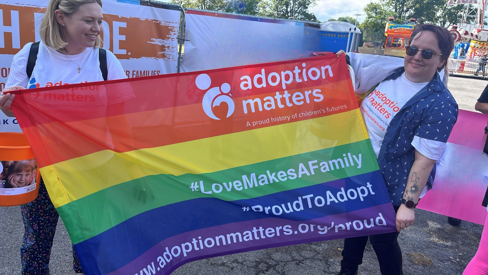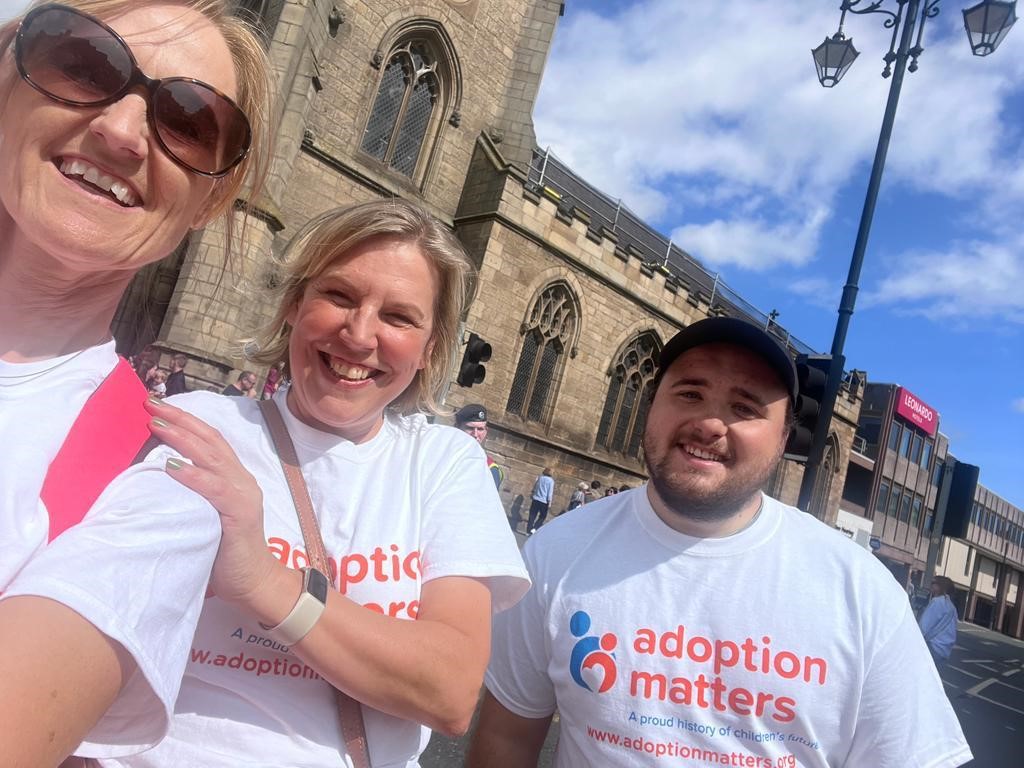 Several members of the Adoption Matters team represented the charity and participated in the parade, waving Pride flags and handing out their very own Adoption Matters branded sweets to the crowd .